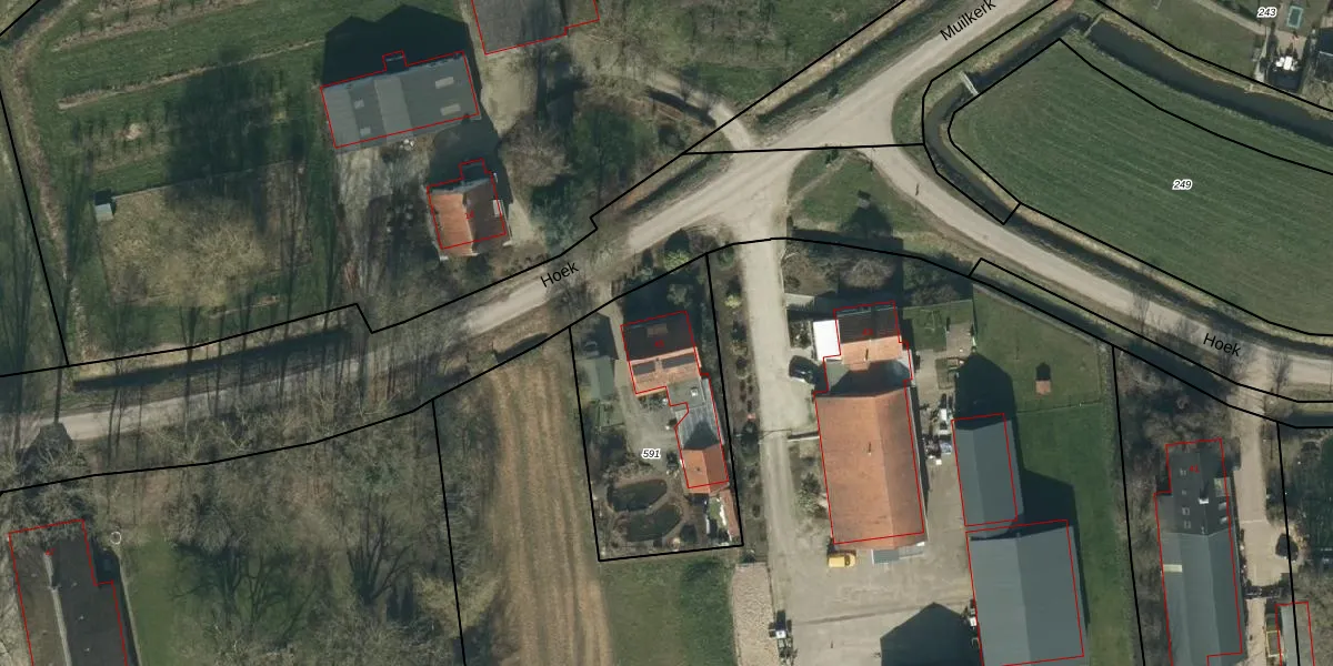 Het perceel waarop Hoek 45 staat heeft een oppervlakte van 860 m². Dit is een groot perceel. De perceeloppervlakte wordt geregistreerd door het Kadaster. Gedetailleerde informatie over de maten van dit perceel kunt u vinden in het rapport Kadastrale kaart met maatvoering van Hoek 45.