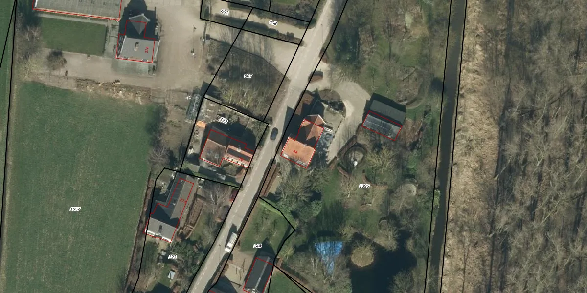 Het perceel waarop Korn 44 staat heeft een oppervlakte van 5485 m². Dit is een zeer groot perceel. De perceeloppervlakte wordt geregistreerd door het Kadaster. Gedetailleerde informatie over de maten van dit perceel kunt u vinden in het rapport Kadastrale kaart met maatvoering van Korn 44.