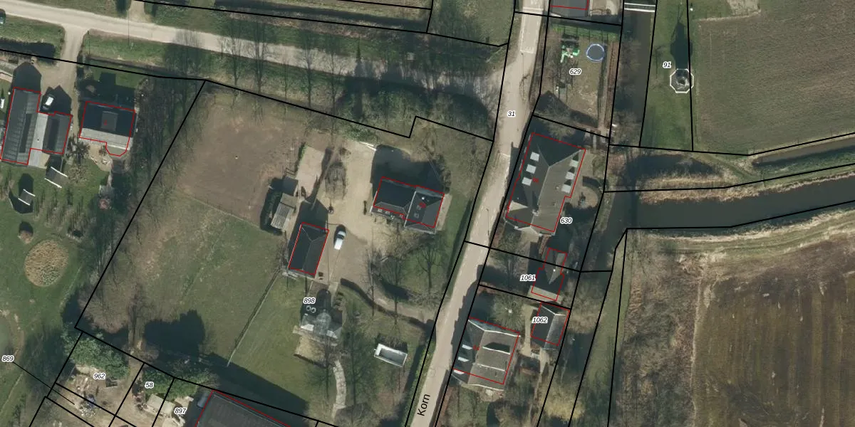 Het perceel waarop Korn 55 staat heeft een oppervlakte van 5311 m². Dit is een zeer groot perceel. De perceeloppervlakte wordt geregistreerd door het Kadaster. Gedetailleerde informatie over de maten van dit perceel kunt u vinden in het rapport Kadastrale kaart met maatvoering van Korn 55.