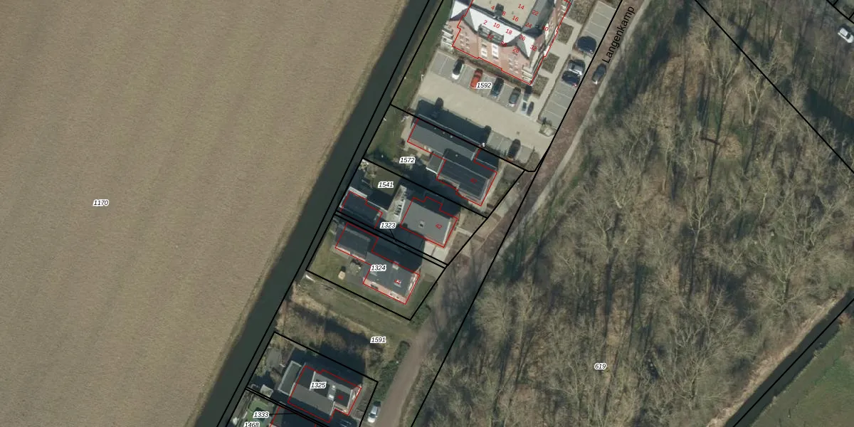 Het perceel waarop Langenkamp 42 staat heeft een oppervlakte van 426 m². Dit is een groot perceel. De perceeloppervlakte wordt geregistreerd door het Kadaster. Gedetailleerde informatie over de maten van dit perceel kunt u vinden in het rapport Kadastrale kaart met maatvoering van Langenkamp 42.