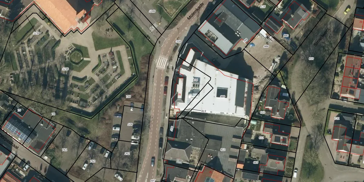 Het perceel waarop Molenkade 25 staat heeft een oppervlakte van 400 m². Dit is een groot perceel. De perceeloppervlakte wordt geregistreerd door het Kadaster. Gedetailleerde informatie over de maten van dit perceel kunt u vinden in het rapport Kadastrale kaart met maatvoering van Molenkade 25.
