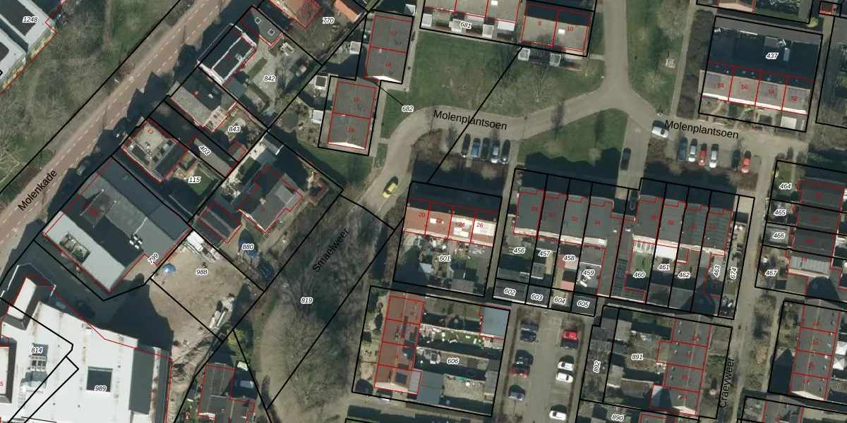 Het perceel waarop Molenplantsoen 20 staat heeft een oppervlakte van 527 m². Dit is een groot perceel. De perceeloppervlakte wordt geregistreerd door het Kadaster. Gedetailleerde informatie over de maten van dit perceel kunt u vinden in het rapport Kadastrale kaart met maatvoering van Molenplantsoen 20.