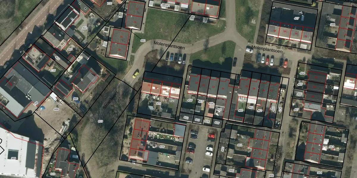 Het perceel waarop Molenplantsoen 26 staat heeft een oppervlakte van 527 m². Dit is een groot perceel. De perceeloppervlakte wordt geregistreerd door het Kadaster. Gedetailleerde informatie over de maten van dit perceel kunt u vinden in het rapport Kadastrale kaart met maatvoering van Molenplantsoen 26.