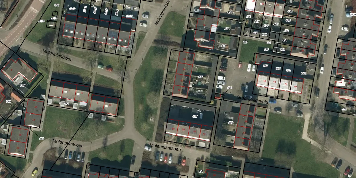 Het perceel waarop Molenplantsoen 60 staat heeft een oppervlakte van 718 m². Dit is een groot perceel. De perceeloppervlakte wordt geregistreerd door het Kadaster. Gedetailleerde informatie over de maten van dit perceel kunt u vinden in het rapport Kadastrale kaart met maatvoering van Molenplantsoen 60.