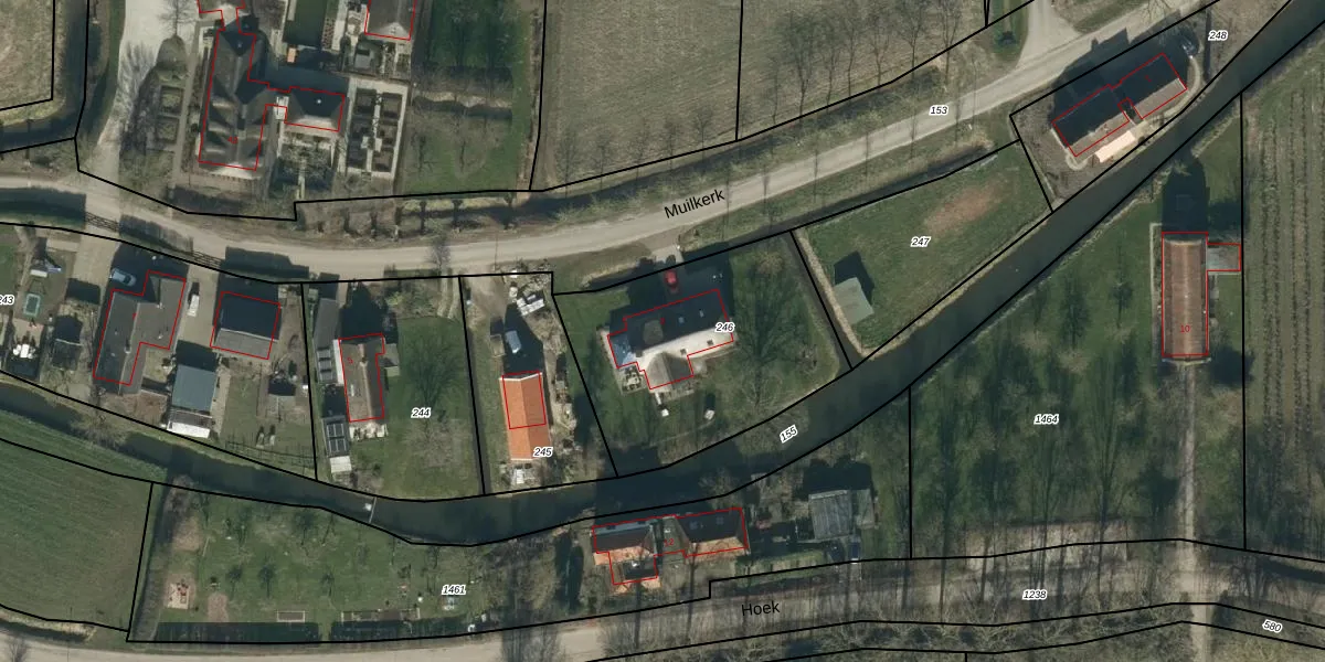 Het perceel waarop Muilkerk 3 staat heeft een oppervlakte van 1010 m². Dit is een zeer groot perceel. De perceeloppervlakte wordt geregistreerd door het Kadaster. Gedetailleerde informatie over de maten van dit perceel kunt u vinden in het rapport Kadastrale kaart met maatvoering van Muilkerk 3.