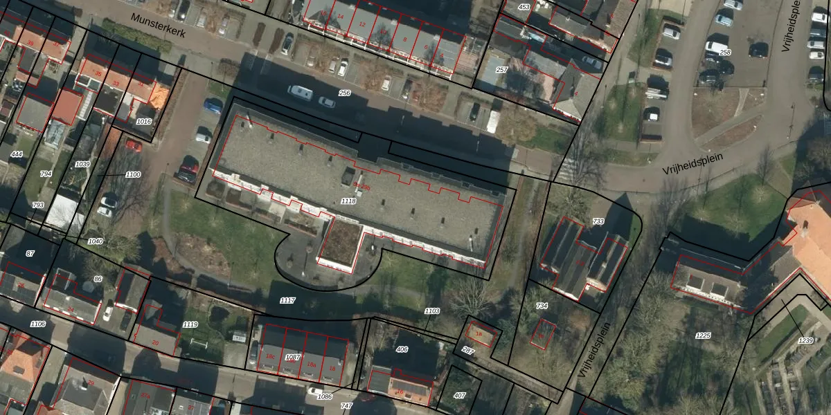 Het perceel waarop Munsterkerk 15-a staat heeft een oppervlakte van 2039 m². Dit is een zeer groot perceel. De perceeloppervlakte wordt geregistreerd door het Kadaster. Gedetailleerde informatie over de maten van dit perceel kunt u vinden in het rapport Kadastrale kaart met maatvoering van Munsterkerk 15-a.