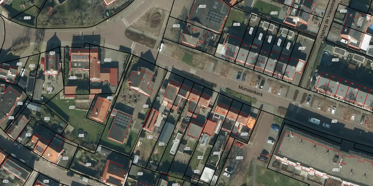 Het perceel waarop Munsterkerk 41 staat heeft een oppervlakte van 305 m². Dit is een groot perceel. De perceeloppervlakte wordt geregistreerd door het Kadaster. Gedetailleerde informatie over de maten van dit perceel kunt u vinden in het rapport Kadastrale kaart met maatvoering van Munsterkerk 41.