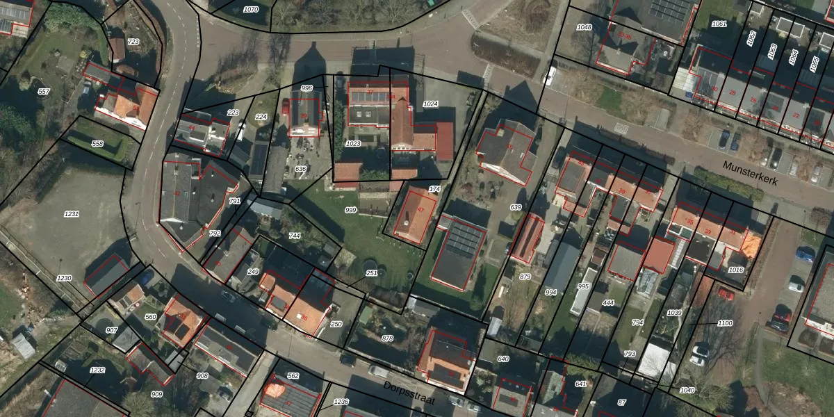 Het perceel waarop Munsterkerk 47 staat heeft een oppervlakte van 215 m². Dit is een middelgroot perceel. De perceeloppervlakte wordt geregistreerd door het Kadaster. Gedetailleerde informatie over de maten van dit perceel kunt u vinden in het rapport Kadastrale kaart met maatvoering van Munsterkerk 47.