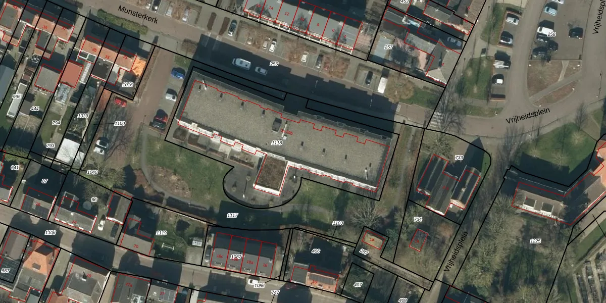 Het perceel waarop Munsterkerk 7-a staat heeft een oppervlakte van 2039 m². Dit is een zeer groot perceel. De perceeloppervlakte wordt geregistreerd door het Kadaster. Gedetailleerde informatie over de maten van dit perceel kunt u vinden in het rapport Kadastrale kaart met maatvoering van Munsterkerk 7-a.
