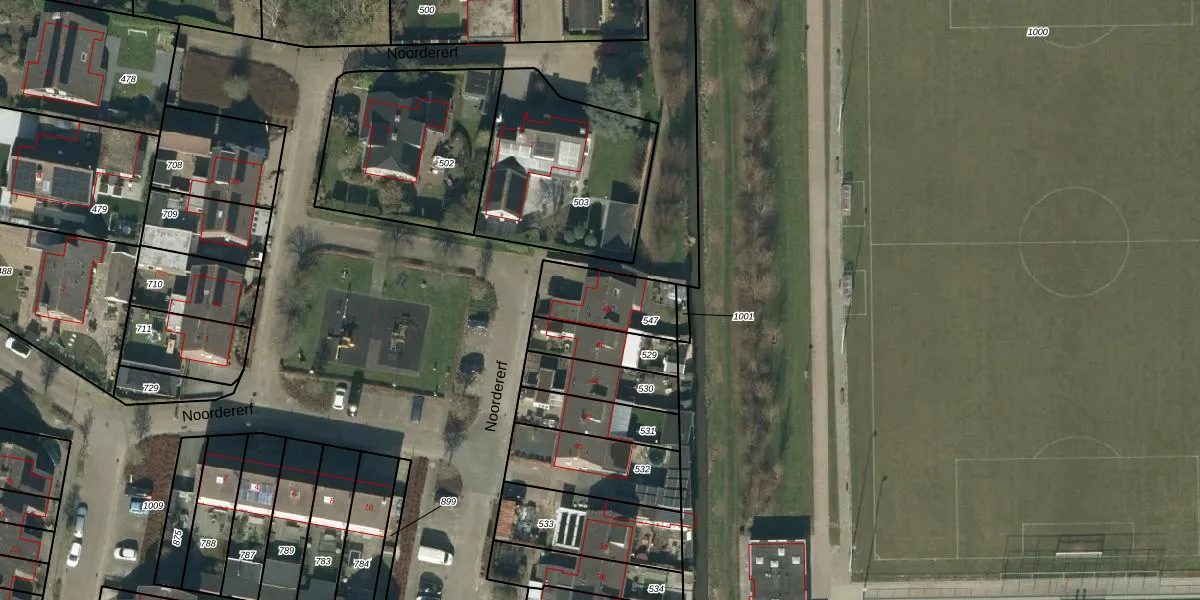 Het perceel waarop Noordererf 48 staat heeft een oppervlakte van 218 m². Dit is een middelgroot perceel. De perceeloppervlakte wordt geregistreerd door het Kadaster. Gedetailleerde informatie over de maten van dit perceel kunt u vinden in het rapport Kadastrale kaart met maatvoering van Noordererf 48.