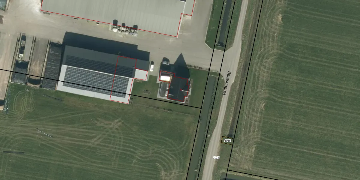 Het perceel waarop Ruttensteeg 1-a staat heeft een oppervlakte van 3,3 ha. Dit is een zeer groot perceel. De perceeloppervlakte wordt geregistreerd door het Kadaster. Gedetailleerde informatie over de maten van dit perceel kunt u vinden in het rapport Kadastrale kaart met maatvoering van Ruttensteeg 1-a.