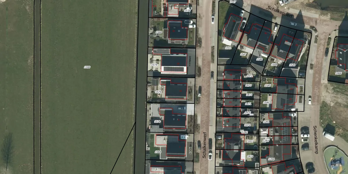 Het perceel waarop Schalkenwerf 11 staat heeft een oppervlakte van 412 m². Dit is een groot perceel. De perceeloppervlakte wordt geregistreerd door het Kadaster. Gedetailleerde informatie over de maten van dit perceel kunt u vinden in het rapport Kadastrale kaart met maatvoering van Schalkenwerf 11.