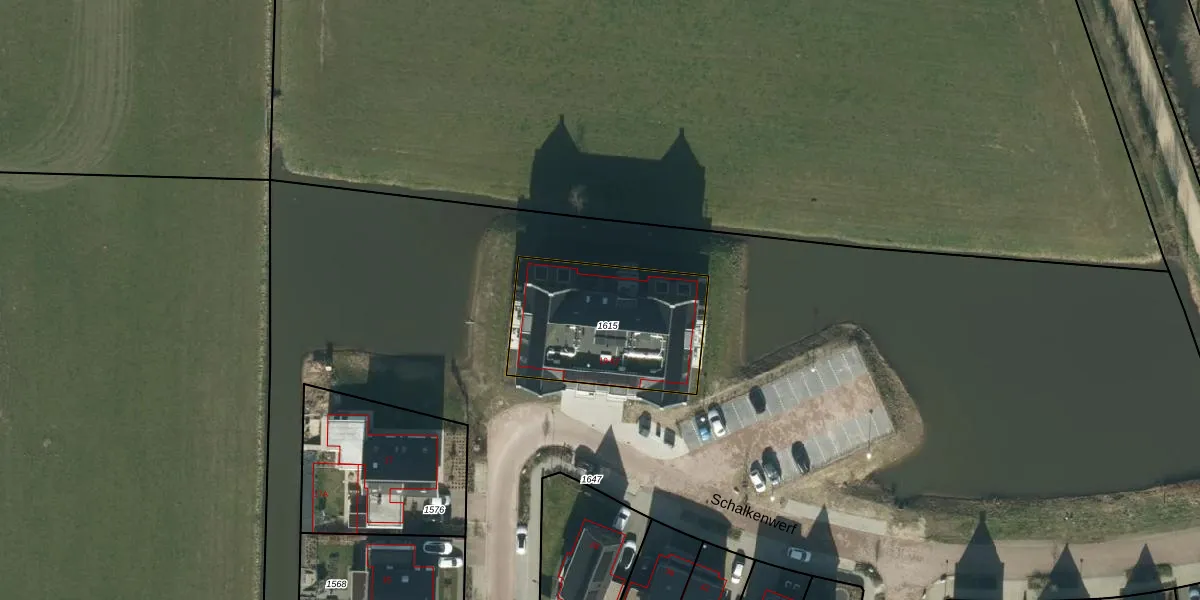 Het perceel waarop Schalkenwerf 47 staat heeft een oppervlakte van 633 m². Dit is een groot perceel. De perceeloppervlakte wordt geregistreerd door het Kadaster. Gedetailleerde informatie over de maten van dit perceel kunt u vinden in het rapport Kadastrale kaart met maatvoering van Schalkenwerf 47.