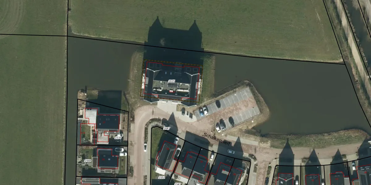 Het perceel waarop Schalkenwerf 55 staat heeft een oppervlakte van 633 m². Dit is een groot perceel. De perceeloppervlakte wordt geregistreerd door het Kadaster. Gedetailleerde informatie over de maten van dit perceel kunt u vinden in het rapport Kadastrale kaart met maatvoering van Schalkenwerf 55.