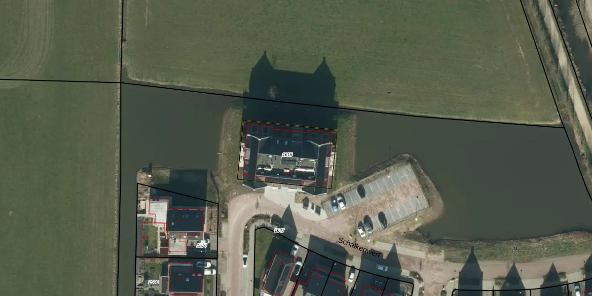Het perceel waarop Schalkenwerf 57 staat heeft een oppervlakte van 633 m². Dit is een groot perceel. De perceeloppervlakte wordt geregistreerd door het Kadaster. Gedetailleerde informatie over de maten van dit perceel kunt u vinden in het rapport Kadastrale kaart met maatvoering van Schalkenwerf 57.