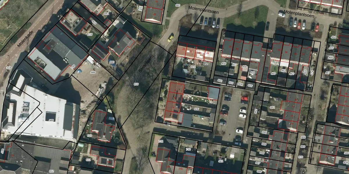 Het perceel waarop Smaelweer 8 staat heeft een oppervlakte van 852 m². Dit is een groot perceel. De perceeloppervlakte wordt geregistreerd door het Kadaster. Gedetailleerde informatie over de maten van dit perceel kunt u vinden in het rapport Kadastrale kaart met maatvoering van Smaelweer 8.
