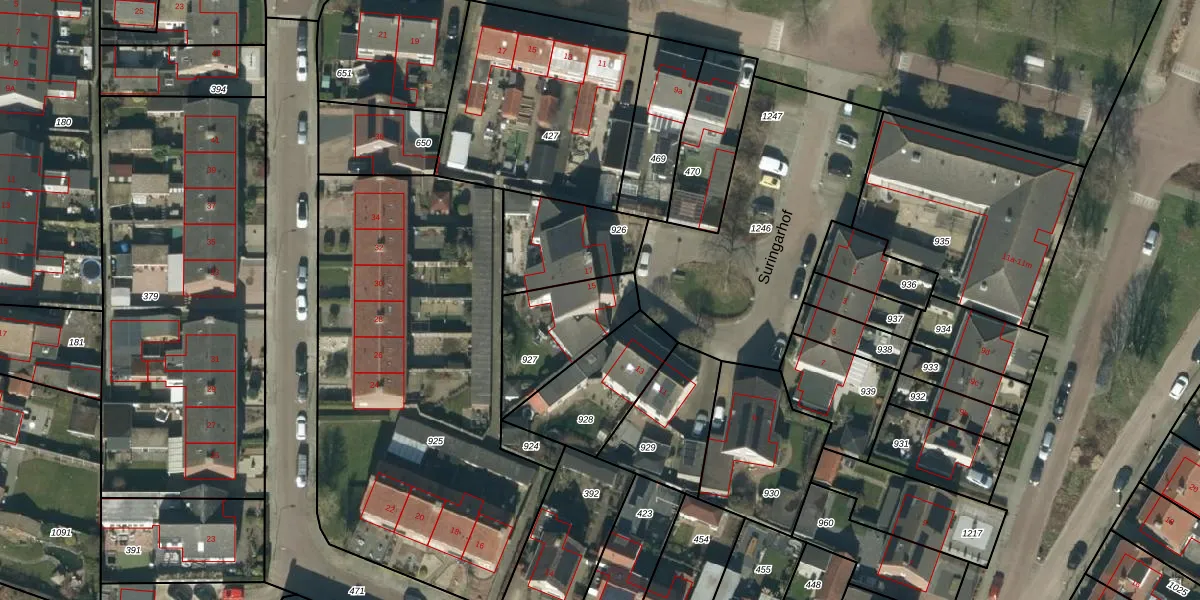 Het perceel waarop Suringarhof 15 staat heeft een oppervlakte van 311 m². Dit is een groot perceel. De perceeloppervlakte wordt geregistreerd door het Kadaster. Gedetailleerde informatie over de maten van dit perceel kunt u vinden in het rapport Kadastrale kaart met maatvoering van Suringarhof 15.