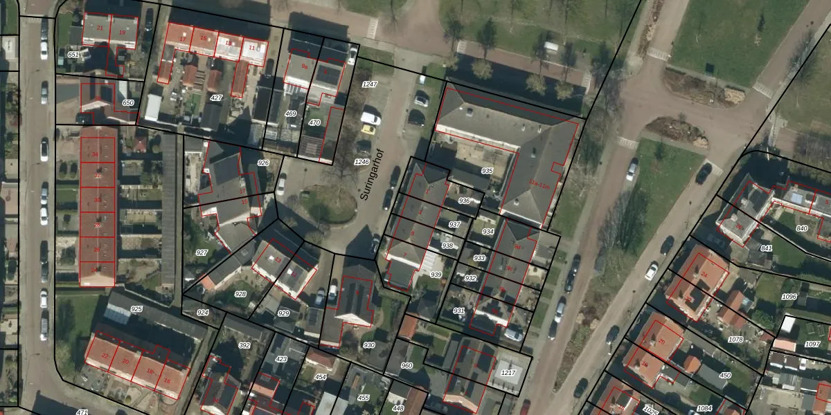 Het perceel waarop Suringarhof 3 staat heeft een oppervlakte van 103 m². Dit is een middelgroot perceel. De perceeloppervlakte wordt geregistreerd door het Kadaster. Gedetailleerde informatie over de maten van dit perceel kunt u vinden in het rapport Kadastrale kaart met maatvoering van Suringarhof 3.