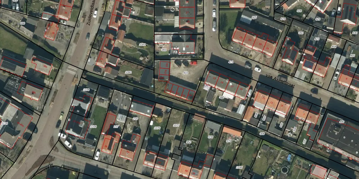 Het perceel waarop van Axelestraat 21-c staat heeft een oppervlakte van 555 m². Dit is een groot perceel. De perceeloppervlakte wordt geregistreerd door het Kadaster. Gedetailleerde informatie over de maten van dit perceel kunt u vinden in het rapport Kadastrale kaart met maatvoering van van Axelestraat 21-c.