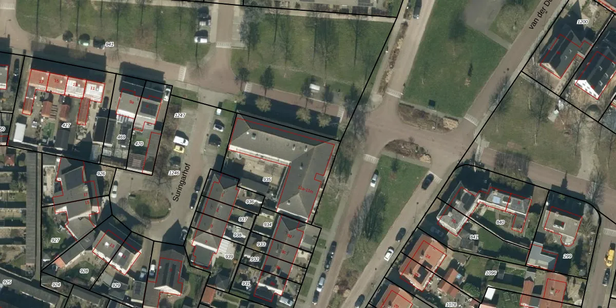 Het perceel waarop van der Dussenlaan 11-j staat heeft een oppervlakte van 856 m². Dit is een groot perceel. De perceeloppervlakte wordt geregistreerd door het Kadaster. Gedetailleerde informatie over de maten van dit perceel kunt u vinden in het rapport Kadastrale kaart met maatvoering van van der Dussenlaan 11-j.