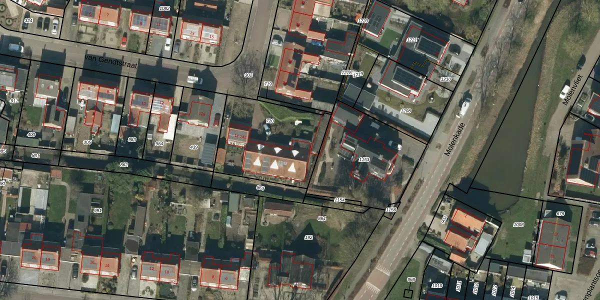 Het perceel waarop van Gendtstraat 14-a staat heeft een oppervlakte van 865 m². Dit is een groot perceel. De perceeloppervlakte wordt geregistreerd door het Kadaster. Gedetailleerde informatie over de maten van dit perceel kunt u vinden in het rapport Kadastrale kaart met maatvoering van van Gendtstraat 14-a.