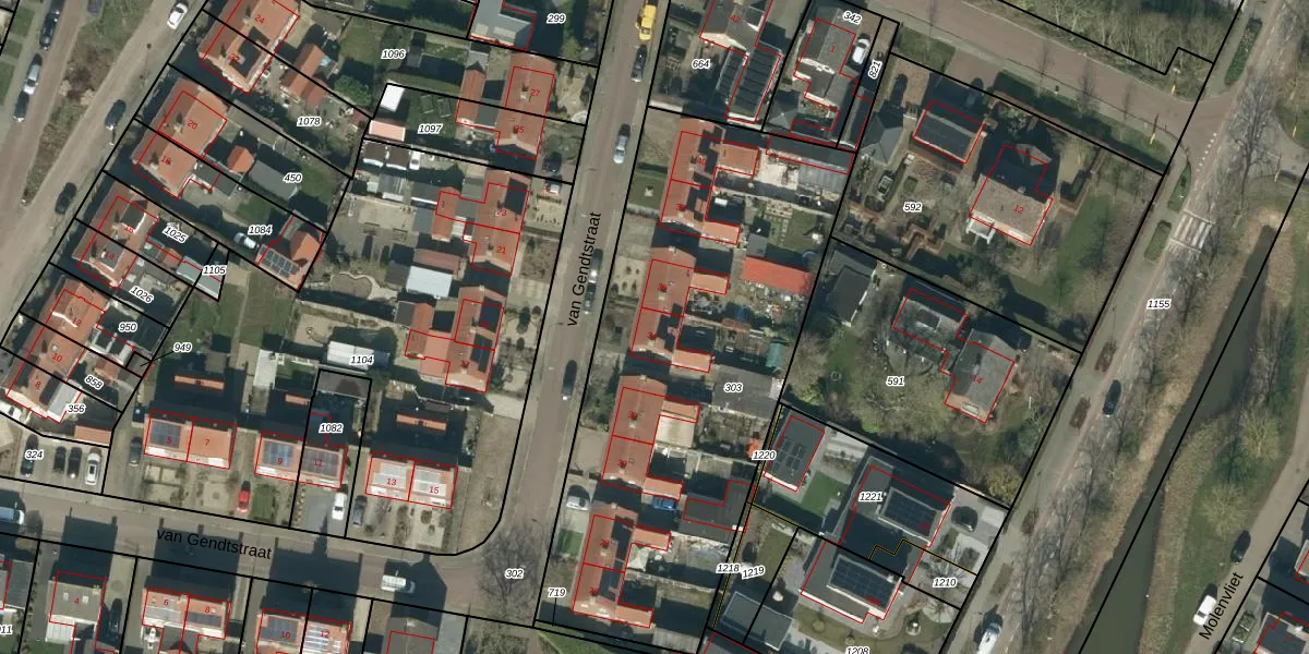 Het perceel waarop van Gendtstraat 34 staat heeft een oppervlakte van 2330 m². Dit is een zeer groot perceel. De perceeloppervlakte wordt geregistreerd door het Kadaster. Gedetailleerde informatie over de maten van dit perceel kunt u vinden in het rapport Kadastrale kaart met maatvoering van van Gendtstraat 34.