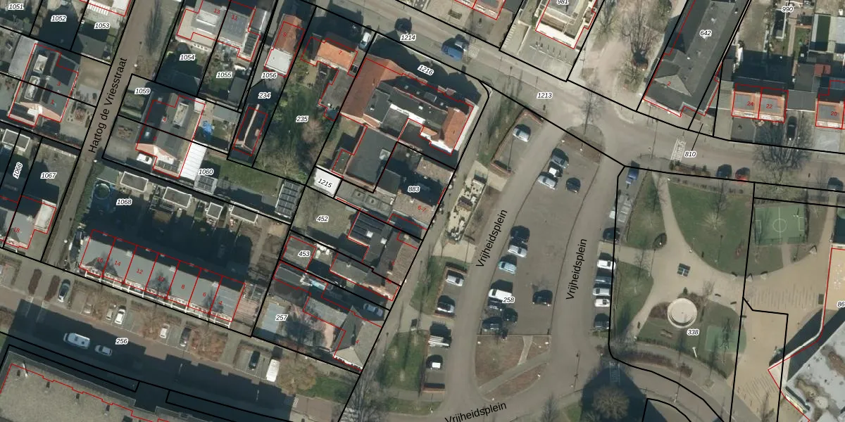Het perceel waarop Vrijheidsplein 6 staat heeft een oppervlakte van 324 m². Dit is een groot perceel. De perceeloppervlakte wordt geregistreerd door het Kadaster. Gedetailleerde informatie over de maten van dit perceel kunt u vinden in het rapport Kadastrale kaart met maatvoering van Vrijheidsplein 6.