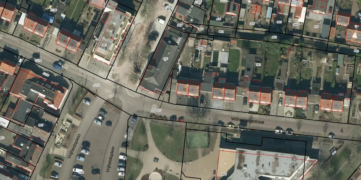 Het perceel waarop Wilhelminastraat 24 staat heeft een oppervlakte van 3889 m². Dit is een zeer groot perceel. De perceeloppervlakte wordt geregistreerd door het Kadaster. Gedetailleerde informatie over de maten van dit perceel kunt u vinden in het rapport Kadastrale kaart met maatvoering van Wilhelminastraat 24.