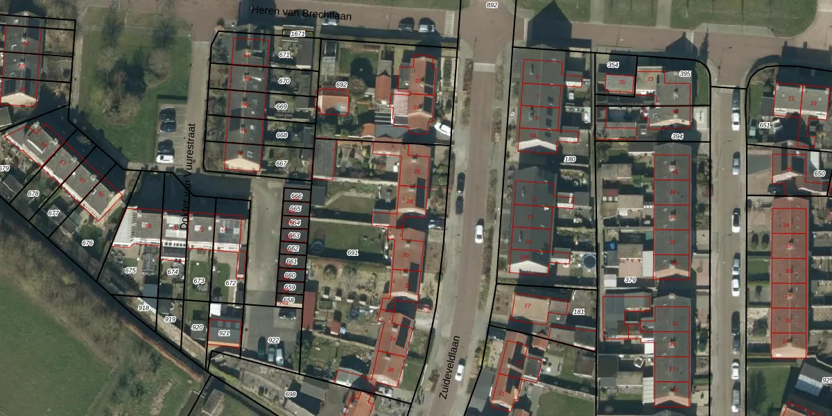 Het perceel waarop Zuideveldlaan 28 staat heeft een oppervlakte van 1895 m². Dit is een zeer groot perceel. De perceeloppervlakte wordt geregistreerd door het Kadaster. Gedetailleerde informatie over de maten van dit perceel kunt u vinden in het rapport Kadastrale kaart met maatvoering van Zuideveldlaan 28.