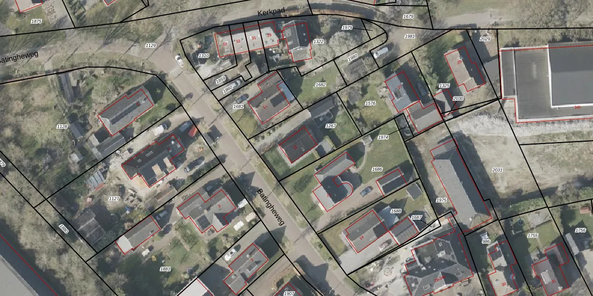Batingheweg 12 is gelegen op kadastraal perceel DGL00K1267. Deze kadastrale aanduiding is uniek en wordt gebruikt door het Kadaster om eigendomsrechten en andere zakelijke rechten vast te leggen. Het perceel maakt onderdeel uit van de kadastrale gemeente Dwingeloo.