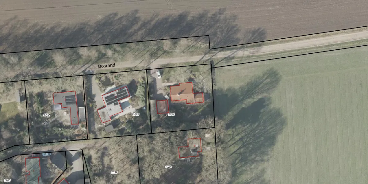 Bosrand 1 is gelegen op kadastraal perceel DGL00M1784. Deze kadastrale aanduiding is uniek en wordt gebruikt door het Kadaster om eigendomsrechten en andere zakelijke rechten vast te leggen. Het perceel maakt onderdeel uit van de kadastrale gemeente Dwingeloo.