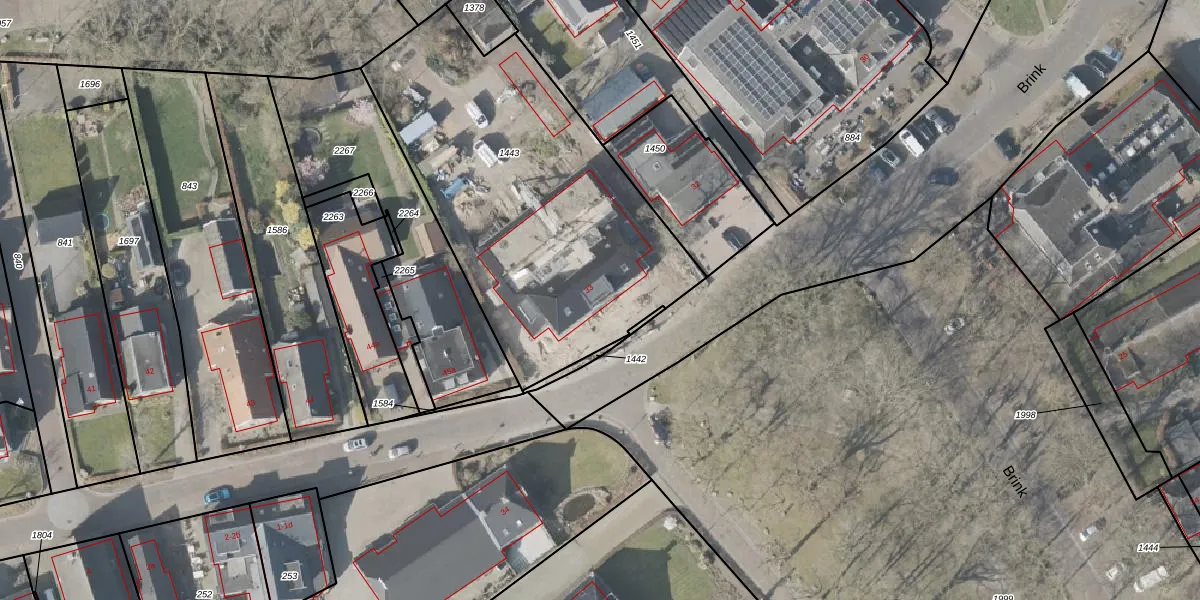 Het perceel waarop Brink 33 staat heeft een oppervlakte van 1767 m². Dit is een zeer groot perceel. De perceeloppervlakte wordt geregistreerd door het Kadaster. Gedetailleerde informatie over de maten van dit perceel kunt u vinden in het rapport Kadastrale kaart met maatvoering van Brink 33.