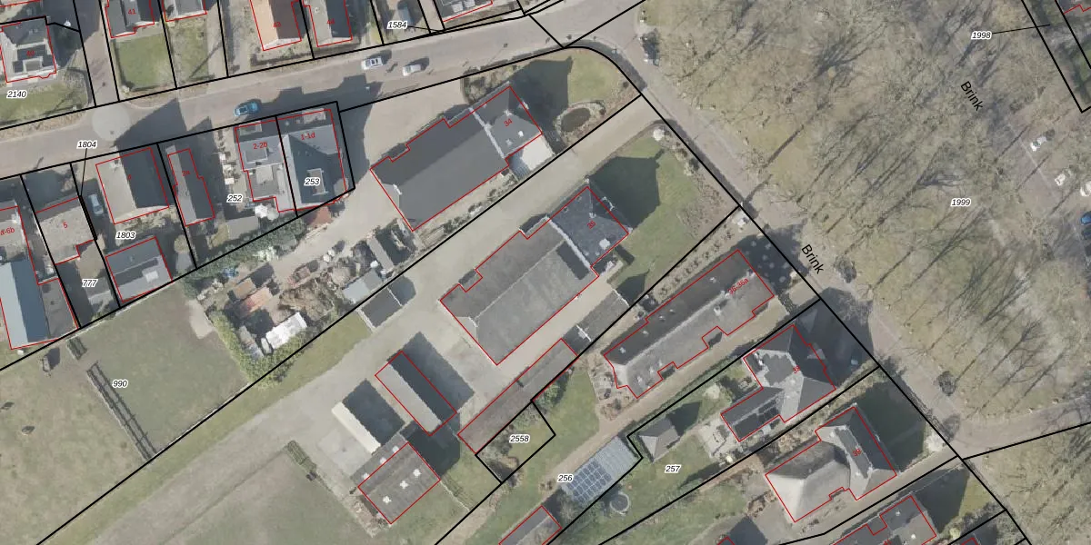 Het perceel waarop Brink 35 staat heeft een oppervlakte van 5,7 ha. Dit is een zeer groot perceel. De perceeloppervlakte wordt geregistreerd door het Kadaster. Gedetailleerde informatie over de maten van dit perceel kunt u vinden in het rapport Kadastrale kaart met maatvoering van Brink 35.