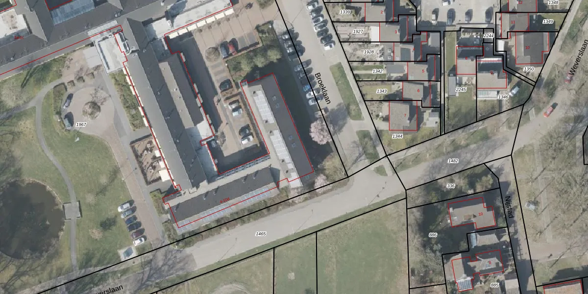Het perceel waarop Broeklaan 6-a staat heeft een oppervlakte van 1,8 ha. Dit is een zeer groot perceel. De perceeloppervlakte wordt geregistreerd door het Kadaster. Gedetailleerde informatie over de maten van dit perceel kunt u vinden in het rapport Kadastrale kaart met maatvoering van Broeklaan 6-a.