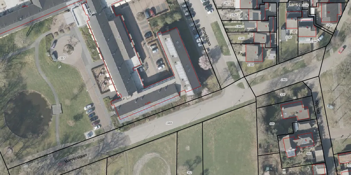 Het perceel waarop Broeklaan 8-d staat heeft een oppervlakte van 1,8 ha. Dit is een zeer groot perceel. De perceeloppervlakte wordt geregistreerd door het Kadaster. Gedetailleerde informatie over de maten van dit perceel kunt u vinden in het rapport Kadastrale kaart met maatvoering van Broeklaan 8-d.