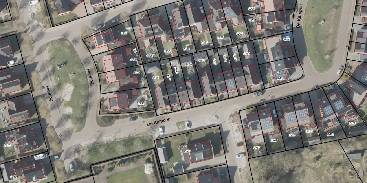 De Kampen 1-c is gelegen op kadastraal perceel DGL00M2458. Deze kadastrale aanduiding is uniek en wordt gebruikt door het Kadaster om eigendomsrechten en andere zakelijke rechten vast te leggen. Het perceel maakt onderdeel uit van de kadastrale gemeente Dwingeloo.
