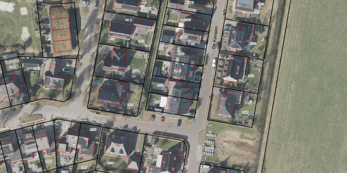 Het perceel waarop De Kampen 29 staat heeft een oppervlakte van 281 m². Dit is een middelgroot perceel. De perceeloppervlakte wordt geregistreerd door het Kadaster. Gedetailleerde informatie over de maten van dit perceel kunt u vinden in het rapport Kadastrale kaart met maatvoering van De Kampen 29.