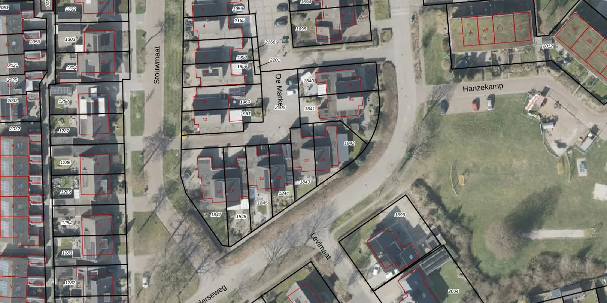 Het perceel waarop De Marke 22 staat heeft een oppervlakte van 170 m². Dit is een middelgroot perceel. De perceeloppervlakte wordt geregistreerd door het Kadaster. Gedetailleerde informatie over de maten van dit perceel kunt u vinden in het rapport Kadastrale kaart met maatvoering van De Marke 22.