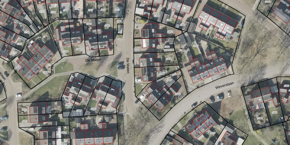 Het perceel waarop De Maten 3 staat heeft een oppervlakte van 313 m². Dit is een groot perceel. De perceeloppervlakte wordt geregistreerd door het Kadaster. Gedetailleerde informatie over de maten van dit perceel kunt u vinden in het rapport Kadastrale kaart met maatvoering van De Maten 3.