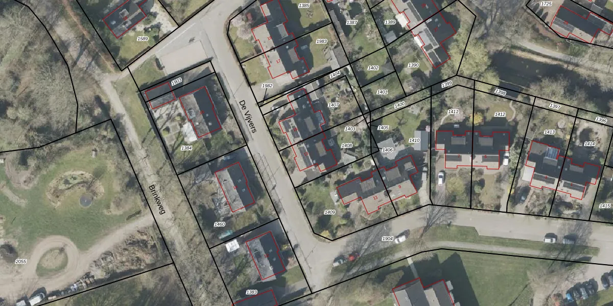 Het perceel waarop De Vijvers 13 staat heeft een oppervlakte van 387 m². Dit is een groot perceel. De perceeloppervlakte wordt geregistreerd door het Kadaster. Gedetailleerde informatie over de maten van dit perceel kunt u vinden in het rapport Kadastrale kaart met maatvoering van De Vijvers 13.