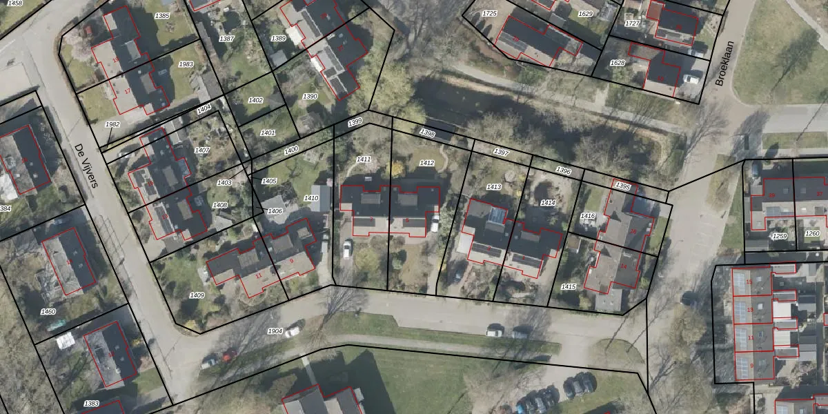 Gebruik de zoekbalk of klik op een perceel voor informatie over de adressen binnen dit perceel.