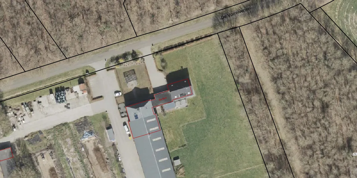 Het perceel waarop De Vorrelvenen 8-b-4 staat heeft een oppervlakte van 13,1 ha. Dit is een zeer groot perceel. De perceeloppervlakte wordt geregistreerd door het Kadaster. Gedetailleerde informatie over de maten van dit perceel kunt u vinden in het rapport Kadastrale kaart met maatvoering van De Vorrelvenen 8-b-4.