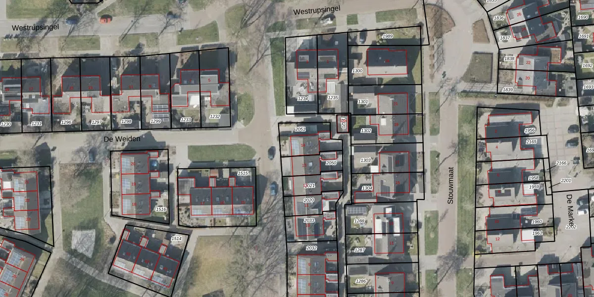 Het perceel waarop De Weiden 14 staat heeft een oppervlakte van 201 m². Dit is een middelgroot perceel. De perceeloppervlakte wordt geregistreerd door het Kadaster. Gedetailleerde informatie over de maten van dit perceel kunt u vinden in het rapport Kadastrale kaart met maatvoering van De Weiden 14.
