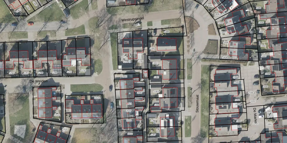 Het perceel waarop De Weiden 14-a staat heeft een oppervlakte van 24 m². Dit is een klein perceel. De perceeloppervlakte wordt geregistreerd door het Kadaster. Gedetailleerde informatie over de maten van dit perceel kunt u vinden in het rapport Kadastrale kaart met maatvoering van De Weiden 14-a.