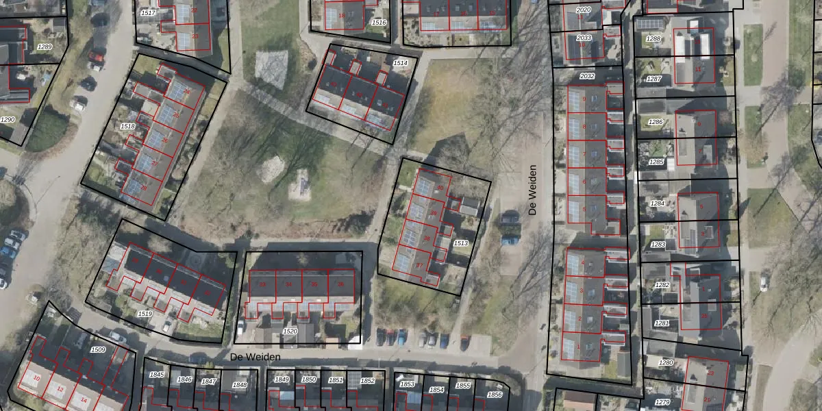 De Weiden 39 is gelegen op kadastraal perceel DGL00K1513. Deze kadastrale aanduiding is uniek en wordt gebruikt door het Kadaster om eigendomsrechten en andere zakelijke rechten vast te leggen. Het perceel maakt onderdeel uit van de kadastrale gemeente Dwingeloo.