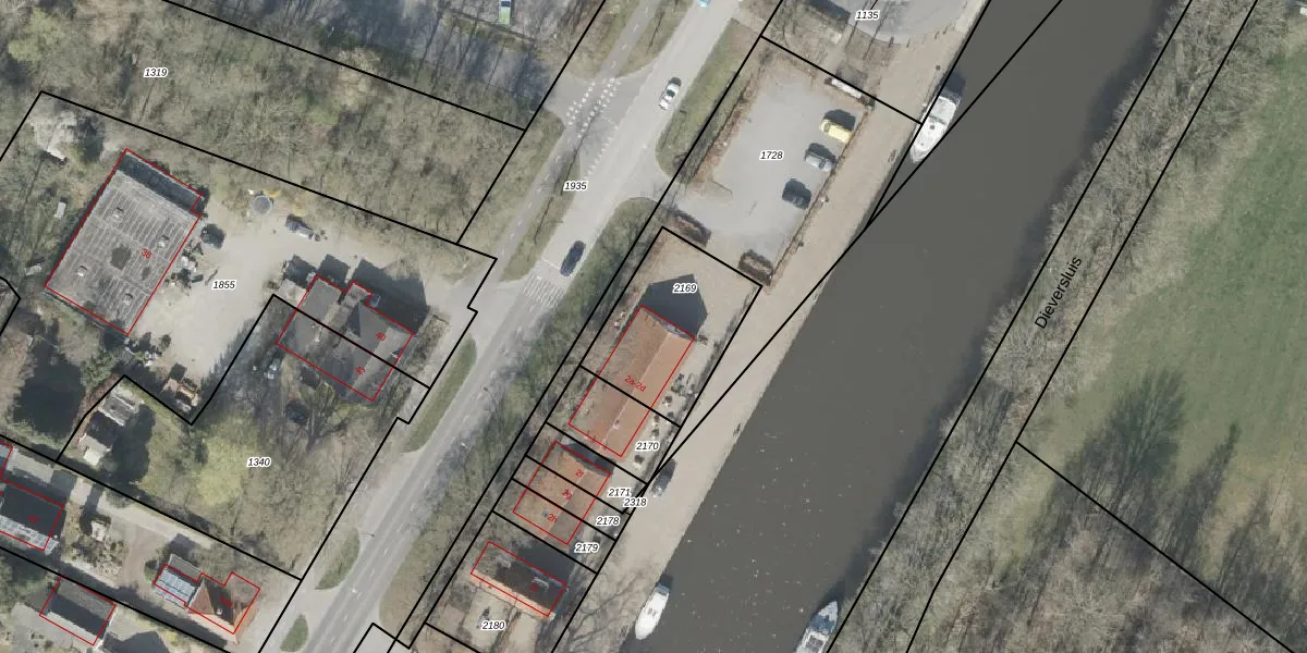 Dieversluis 2-a is gelegen op kadastraal perceel DVR00I2169. Deze kadastrale aanduiding is uniek en wordt gebruikt door het Kadaster om eigendomsrechten en andere zakelijke rechten vast te leggen. Het perceel maakt onderdeel uit van de kadastrale gemeente Diever.