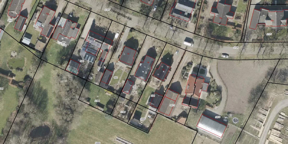 Dwingelderdijk 18 is gelegen op kadastraal perceel DGL00L593. Deze kadastrale aanduiding is uniek en wordt gebruikt door het Kadaster om eigendomsrechten en andere zakelijke rechten vast te leggen. Het perceel maakt onderdeel uit van de kadastrale gemeente Dwingeloo.