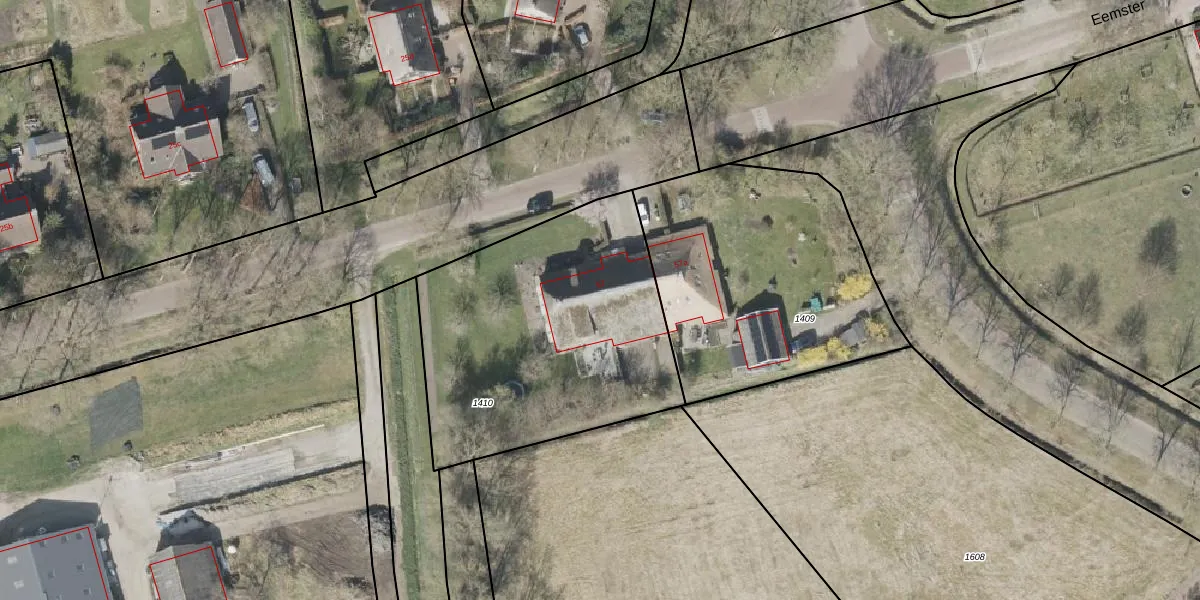 Het perceel waarop het adres ligt is DGL00-L-1410. De afkorting 'DGL00' staat voor kadastrale gemeente Dwingeloo. De gemiddelde perceelgrootte in Dwingeloo is 1,5 ha. Dit perceel is kleiner: de perceeloppervlakte bedraagt 1410 m². Het grootste perceel in de kadastrale gemeente is 2,60 km². Het kleinste perceel heeft een oppervlakte van 1 m². Op het perceel bevinden zich geen andere adressen. De huidige grenzen van het perceel zijn digitaal in de Basisregistratie Kadaster (BRK) geregistreerd op 02-10-2000.