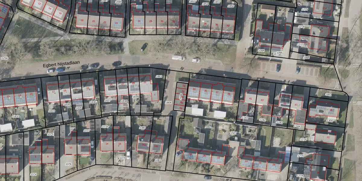 Het perceel waarop Egbert Nijstadlaan 2-g staat heeft een oppervlakte van 94 m². Dit is een klein perceel. De perceeloppervlakte wordt geregistreerd door het Kadaster. Gedetailleerde informatie over de maten van dit perceel kunt u vinden in het rapport Kadastrale kaart met maatvoering van Egbert Nijstadlaan 2-g.
