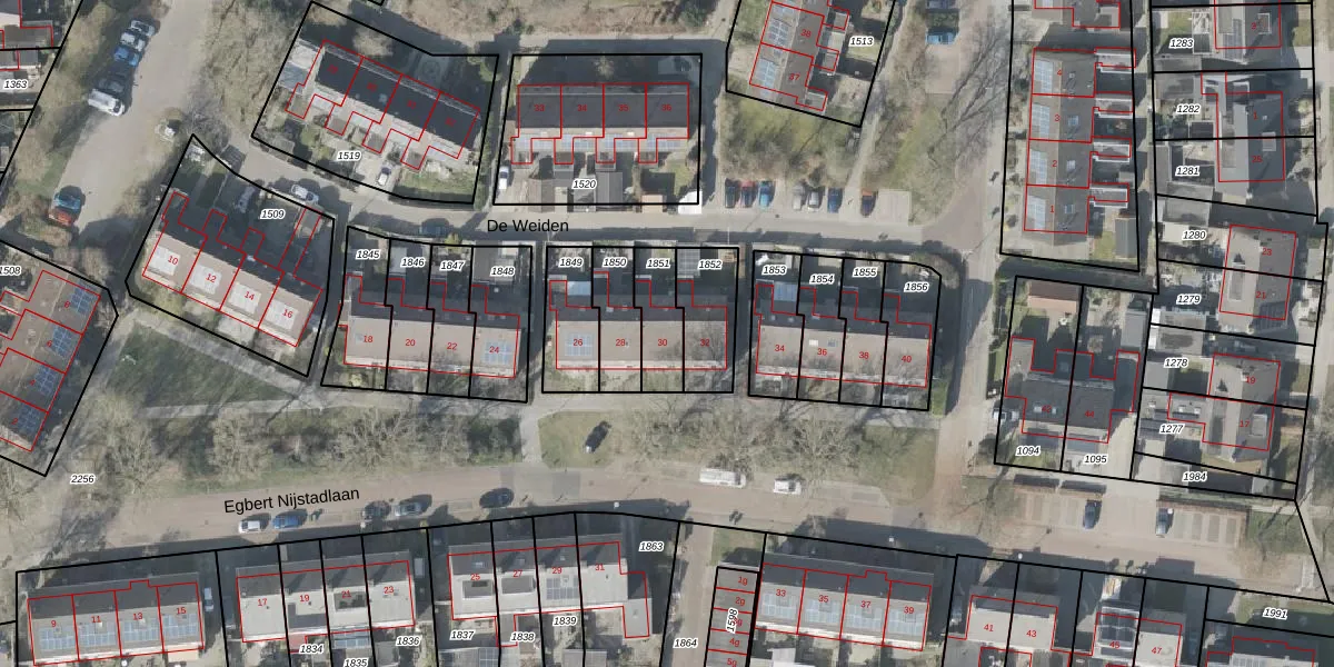 Gebruik de zoekbalk of klik op een perceel voor informatie over de adressen binnen dit perceel.